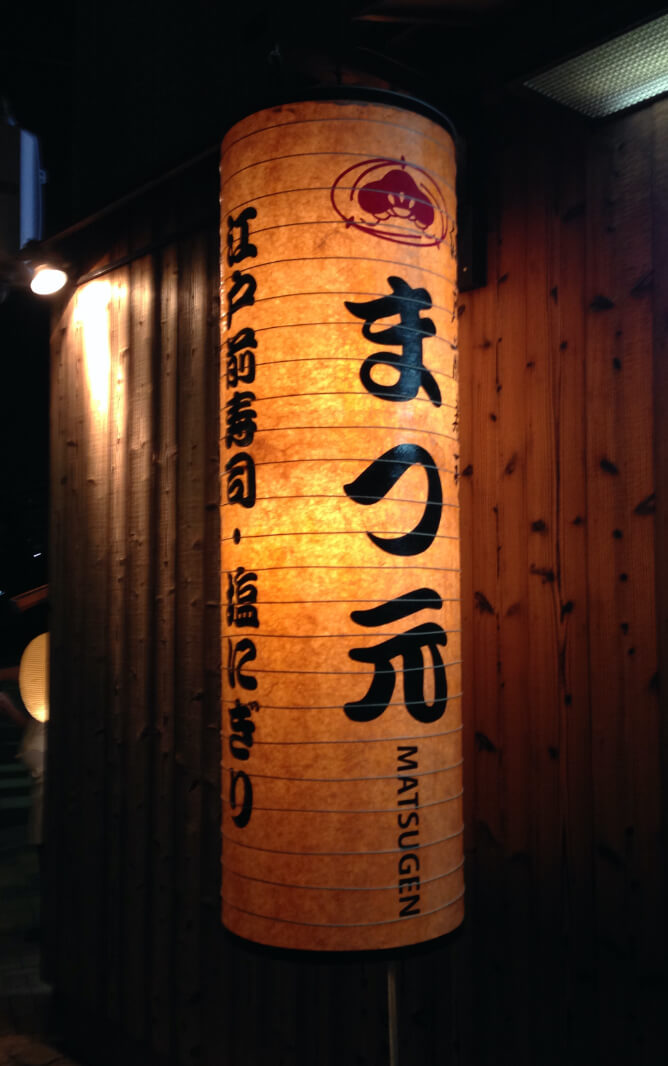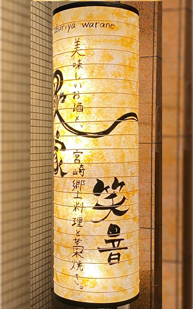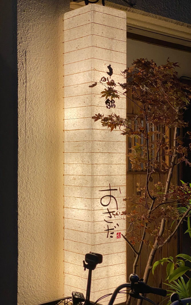 円柱型 小田原提灯風行灯 和紙の上にカッティングシートの文字を入れています。和紙の良い色が出ました。場所:兵庫県神戸市東灘区御影中町3-1-8