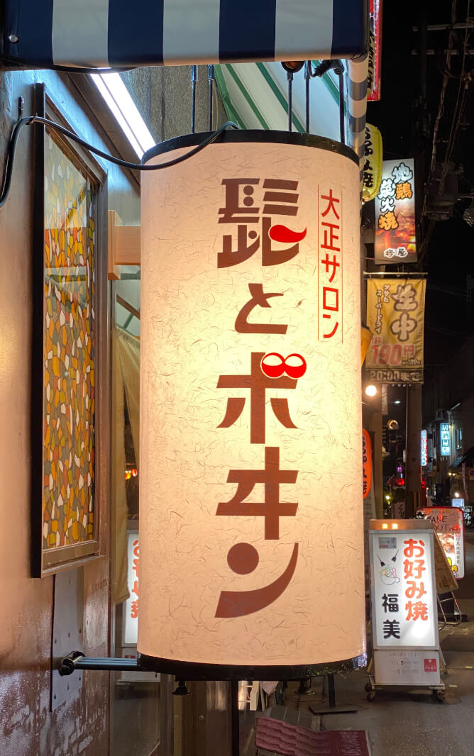 円柱型行灯 出力シートの上に和紙を貼り付けて制作しています。モダン風に表現しました。 場所:大阪府大阪市大正区三軒家東1-5-14